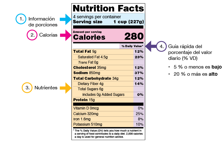 Las etiquetas de información nutricional pueden ayudarlo a elegir alimentos y bebidas con poco o ningún azúcar agregado.