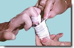 Splinting of wounds is often necessary for patients with insensitive hands in order to protect the affective area during healing. Only the minimum that needs to be immobilized is included in a dressing or splint, in order to keep the patient using the hand and increase their compliance with immobilization for the necessary period of healing.