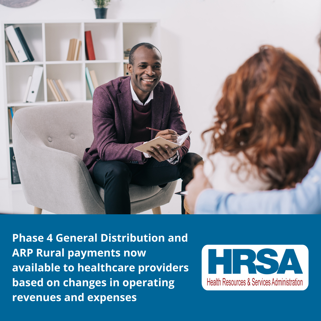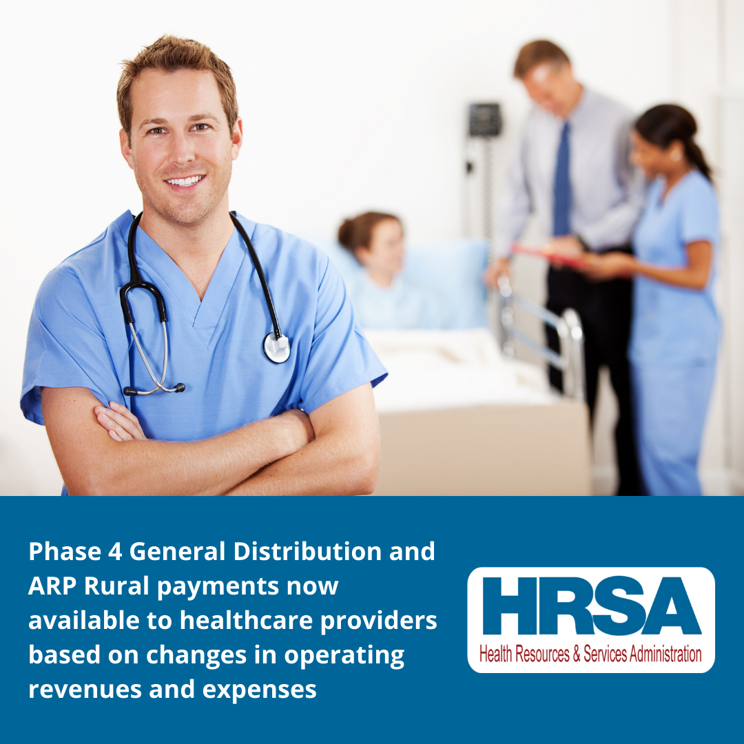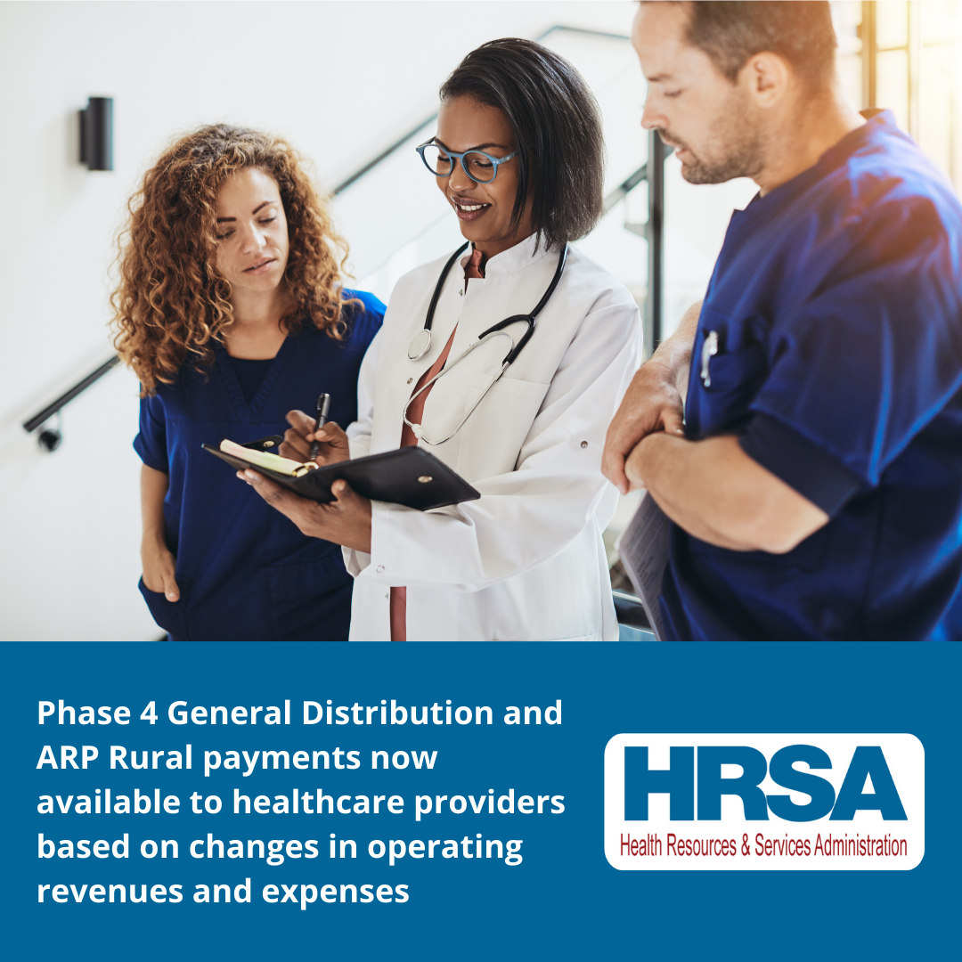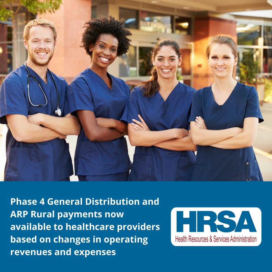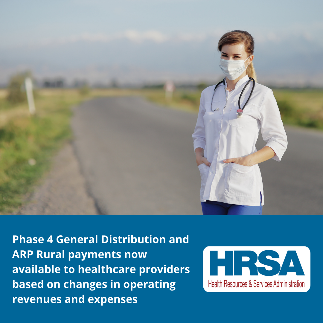 | Download Image | General Health Care | Application for financial relief closes Oct. 26! Get support for your changes in operating revenues and expenses through Phase 4 of the #ProviderReliefFund and #AmericanRescuePlan Rural Distributions. Apply now! http://hrsa.gov/provider-relief/future-payments |
