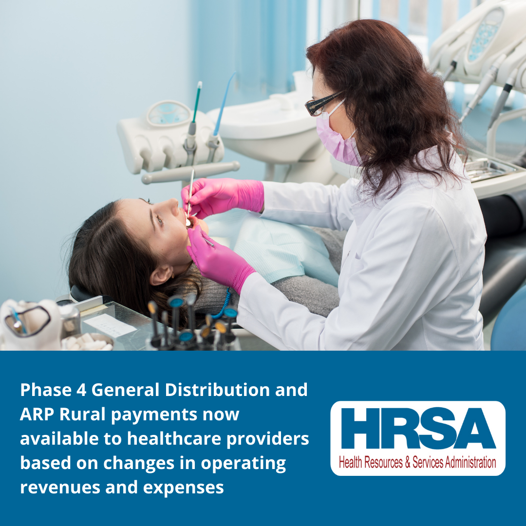 | Download Image | Dental Providers | ATTENTION dental providers — you may be eligible for financial relief. Learn more and apply now for #ProviderReliefFund Phase 4 and #AmericanRescuePlan Rural payments at: http://hrsa.gov/provider-relief/future-payments |