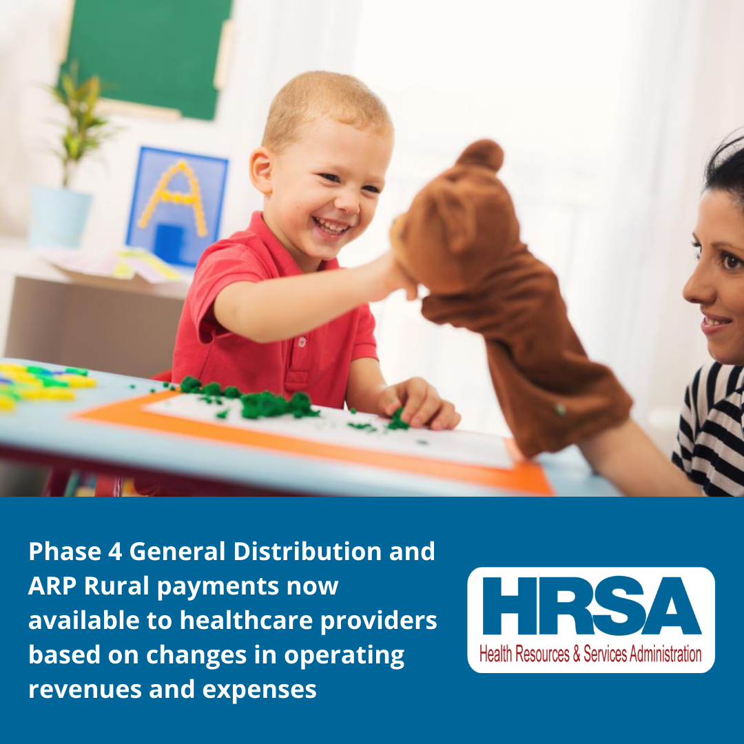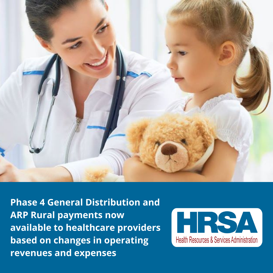 | Download Image | School-Based Health Providers | ATTENTION school-based health care providers—you may be eligible for financial relief to help with COVID-19 related revenue losses and expenses. Learn more and apply now for #ProviderReliefFund Phase 4 and #AmericanRescuePlan Rural payments at: http://hrsa.gov/provider-relief/future-payments |